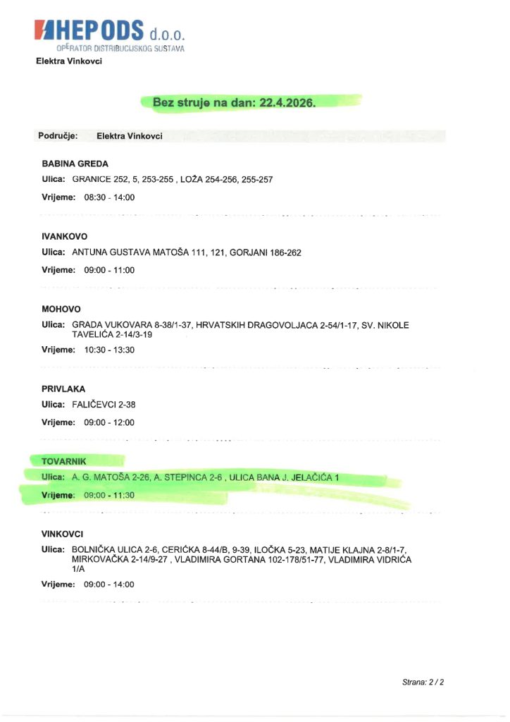 Za sva druga pitanja koristite adresu info.dpvinkovci@hep.hr ili telefon 0800 300 409.