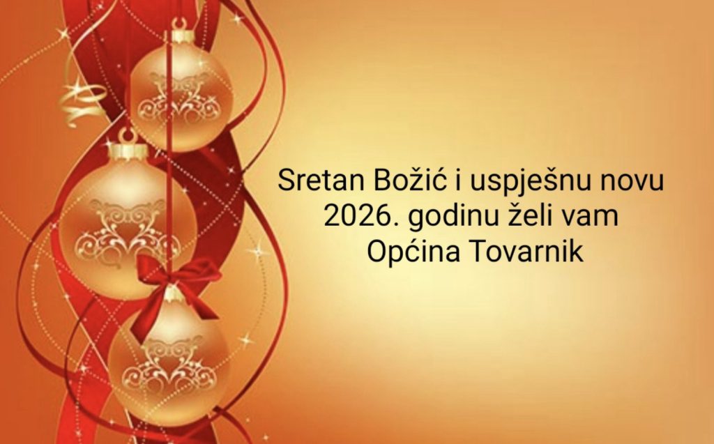 SRETAN BOŽIĆ I USPJEŠNU NOVU 2026. GODINU ŽELE VAM OPĆINSKI NAČELNIK I DJELATNICI OPĆINE TOVARNIK!